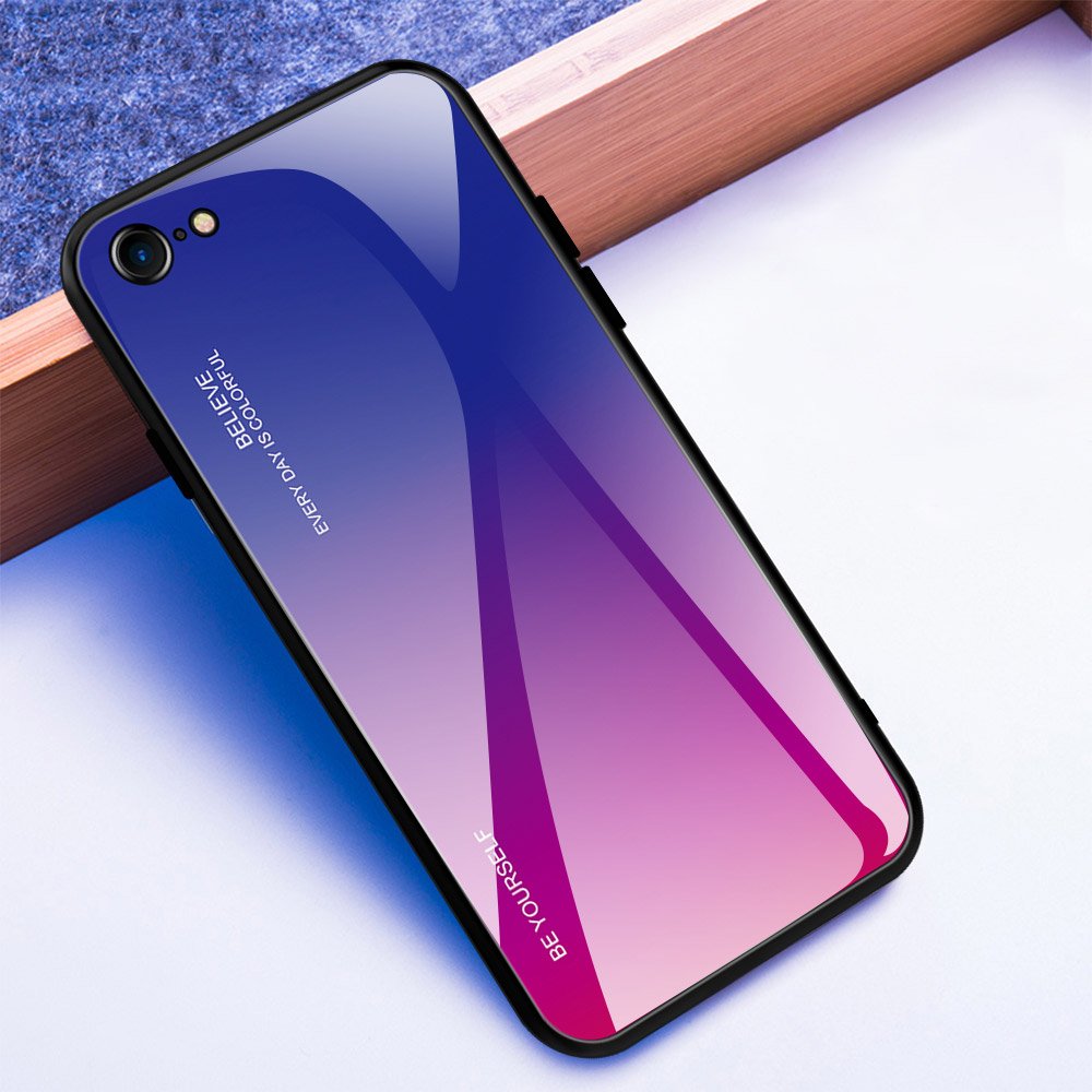 Tampa durável de vidro gradiente com parte traseira de vidro temperado iPhone SE 2020 - iPhone 8 - iPhone 7 rosa está esgotado e será enviado assim que estiver de novo em estoque.