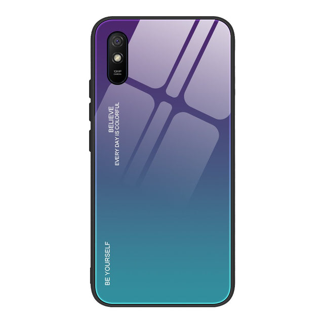Tampa durável de vidro gradiente com parte traseira de vidro temperado Xiaomi Redmi 9A verde-roxo