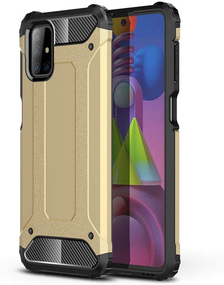 Capa Hybrid Armor Capa resistente e resistente para Samsung Galaxy M51 dourada