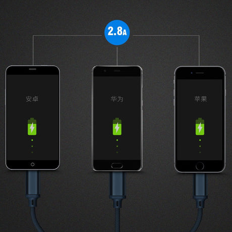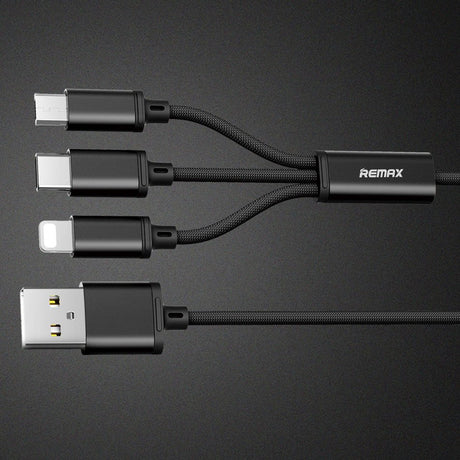 Remax Gition 3in1 RC-131th Nylon trançado USB - cabo micro USB - Lightning - USB-C 2.8A 115M azul