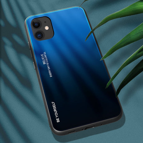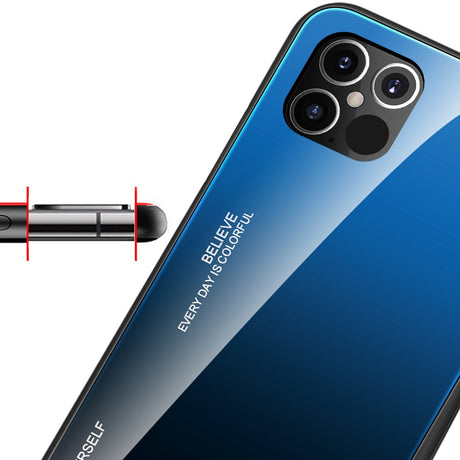 Tampa durável de vidro gradiente com fundo de vidro temperado iPhone 12 Pro Max preto-azul