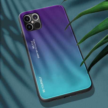 Tampa durável de vidro gradiente com parte traseira de vidro temperado iPhone 12 Pro Max verde-roxo