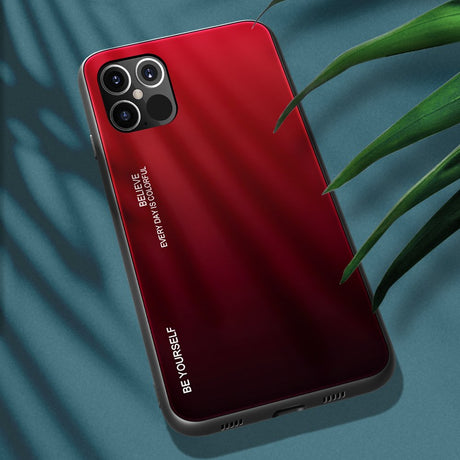 Tampa durável de vidro gradiente com fundo de vidro temperado iPhone 12 Pro Max preto-vermelho