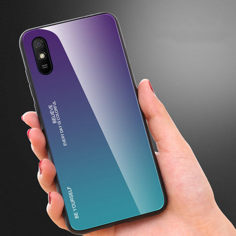 Tampa durável de vidro gradiente com fundo de vidro temperado Xiaomi Redmi 9C verde-roxo
