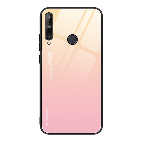 Tampa durável de vidro gradiente com parte traseira de vidro temperado Huawei P40 Lite E rosa