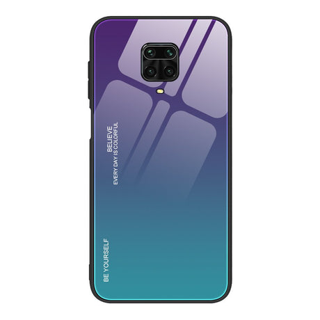 Tampa durável de vidro gradiente com parte traseira de vidro temperado Huawei P40 Lite E preto-azul