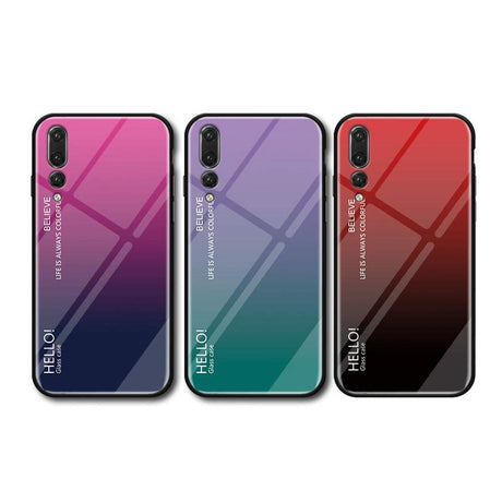 Tampa durável de vidro gradiente com parte traseira de vidro temperado Huawei P20 Pro verde-roxo