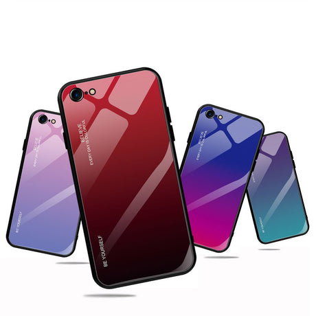 Tampa durável de vidro gradiente com parte traseira de vidro temperado iPhone XS - iPhone X rosa