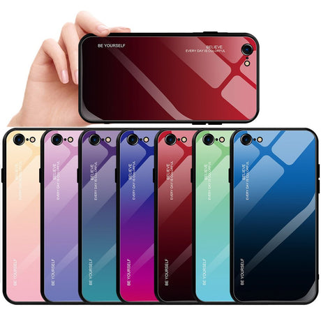 Tampa durável de vidro gradiente com parte traseira de vidro temperado iPhone XR verde-roxo