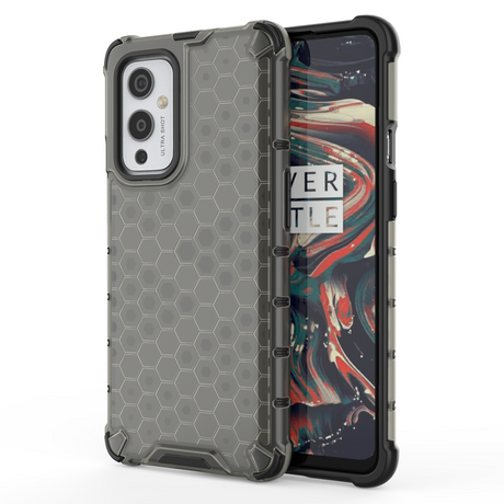 Capa de armadura case em favo de mel com pára-choque de TPU para OnePlus 9 preto
