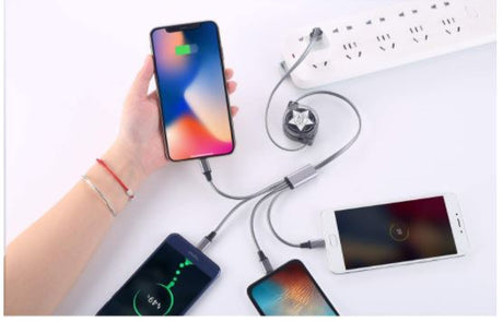 Cabo de carregamento 4 em 1 múltiplo, retro USB