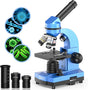 - Microscópio científico com ocular integrada WF10x, WF25x e lente ótica: Lentes com 4, 10 e 40 aumentos, cabeça monocular giratória que oferece seis níveis de aumento: 40, 100, 250, 400 e 1000. A ótica de alta qualidade pode dar às crianças uma melhor qualidade visual e uma imagem nítida ao usar.