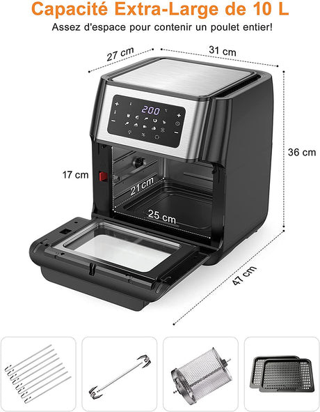 Innsky Hot Air Fryer 10 Litros 1500W - 10 em 1 com 6 acessórios