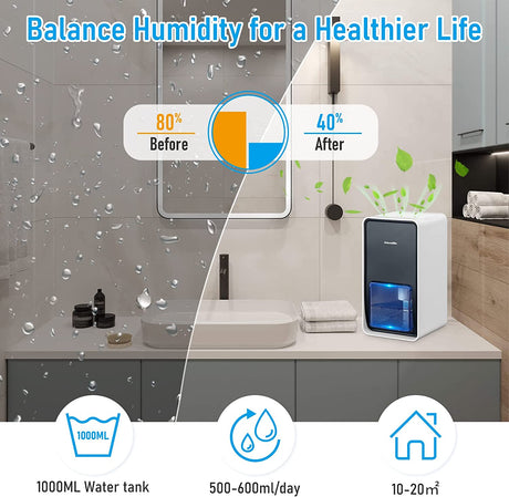 Desumidificador 1L - 500 ml/dia - até 20m2 Silencioso