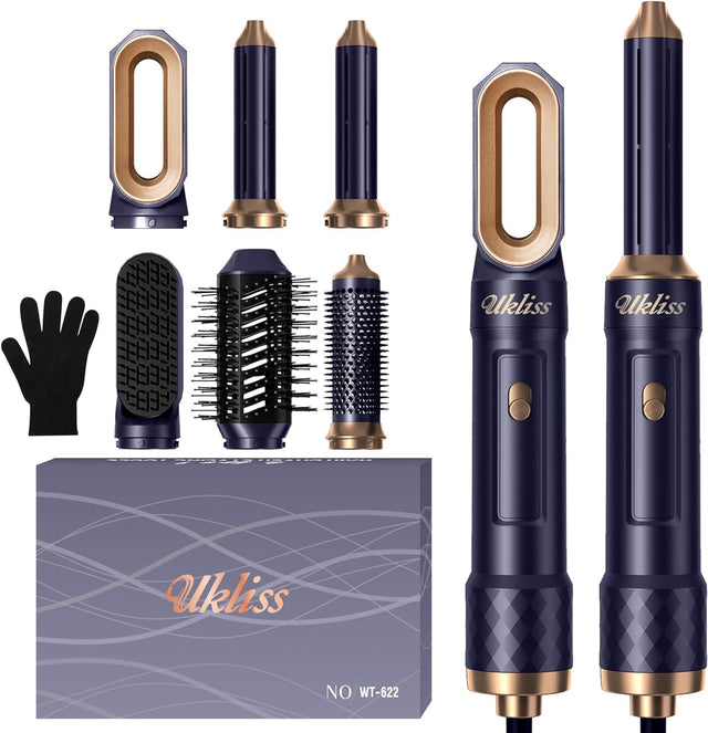 Contém 2 modeladores automáticos, 1 escova de secar, 1 escova de alisamento e 1 secador de cabelo. É muito confortável de usar, basta pressionar o botão na parte de trás para desmontar e mudar a cabeça do secador de cabelo. A escova de secagem para cabelo recomenda o uso de luvas anti-queimaduras ao mudar para evitar queimaduras.